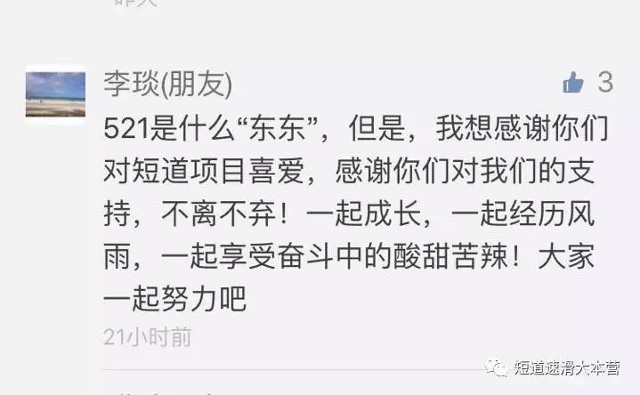 “我想感激你们对短道项目喜爱,感激你们对我们的支撑,不离不弃!一路成长,一路履历风雨,一路享受奋斗中的悲欢离合!大师一路勤奋吧。